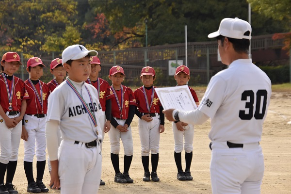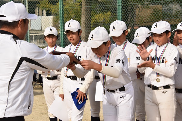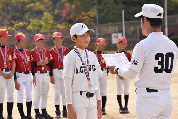 先日のプレジャーリーグ決勝戦でノーヒットノーラン達成し、チーム表彰されました。